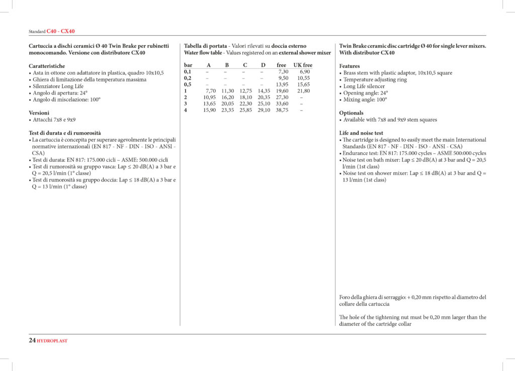 • La cartuccia è concepita per superare agevolmente le principali normative internazionali (EN 817 – NF – DIN – ISO – ANSI – CSA)