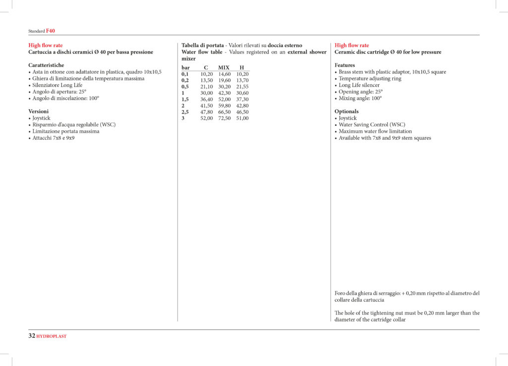 Versione standard: Stem squares 10×10.5, Temperature adjusting ring, Long Life silencer.
