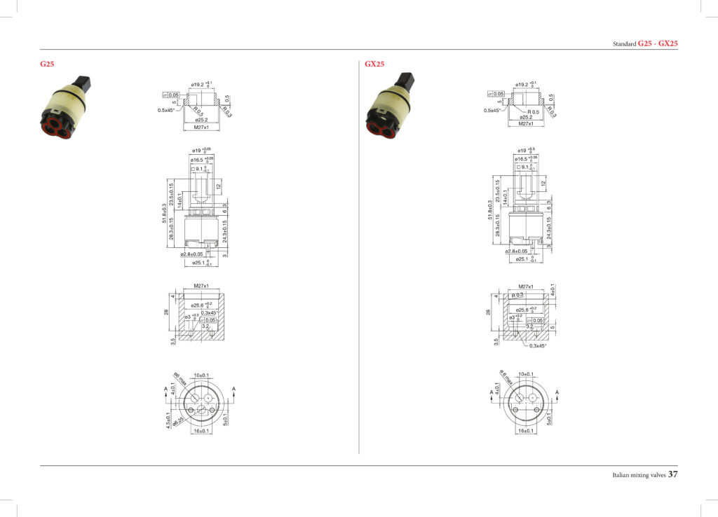 Cartuccia a dischi ceramici Ø 25 per rubinetti monocomando, versione “aperta”
