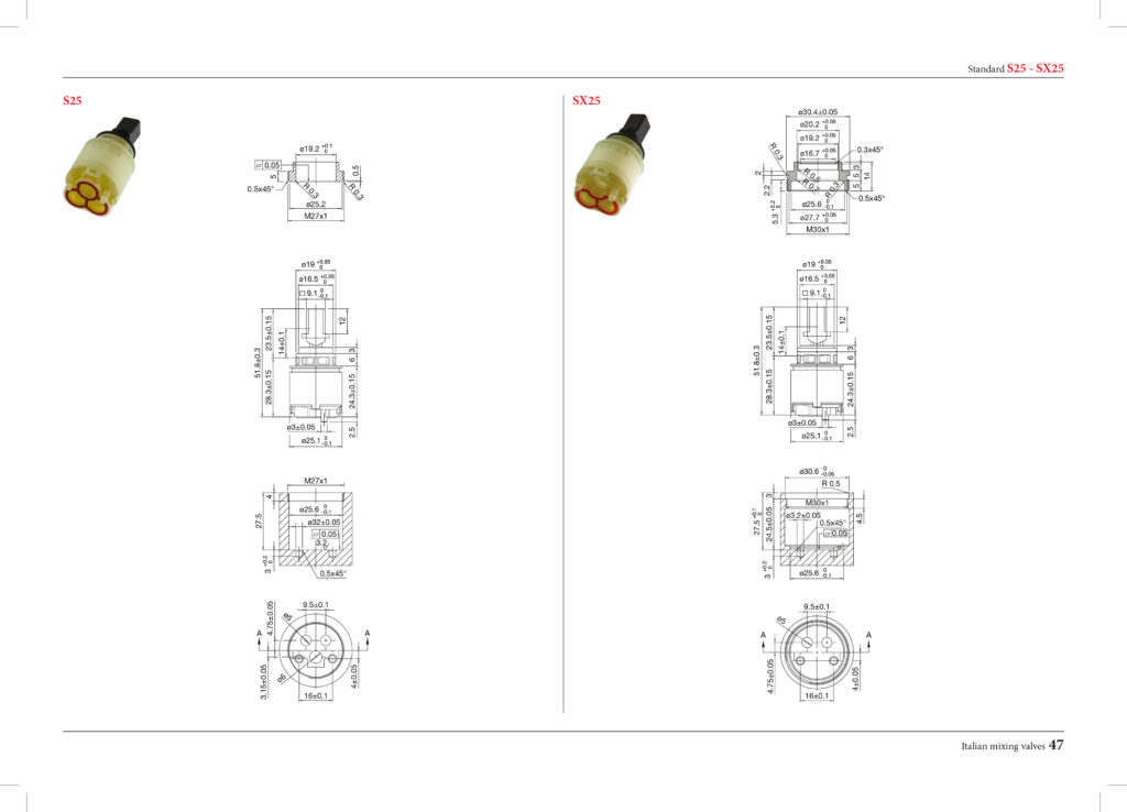 Cartuccia a dischi ceramici Ø 25 per rubinetti monocomando, versione “aperta”.